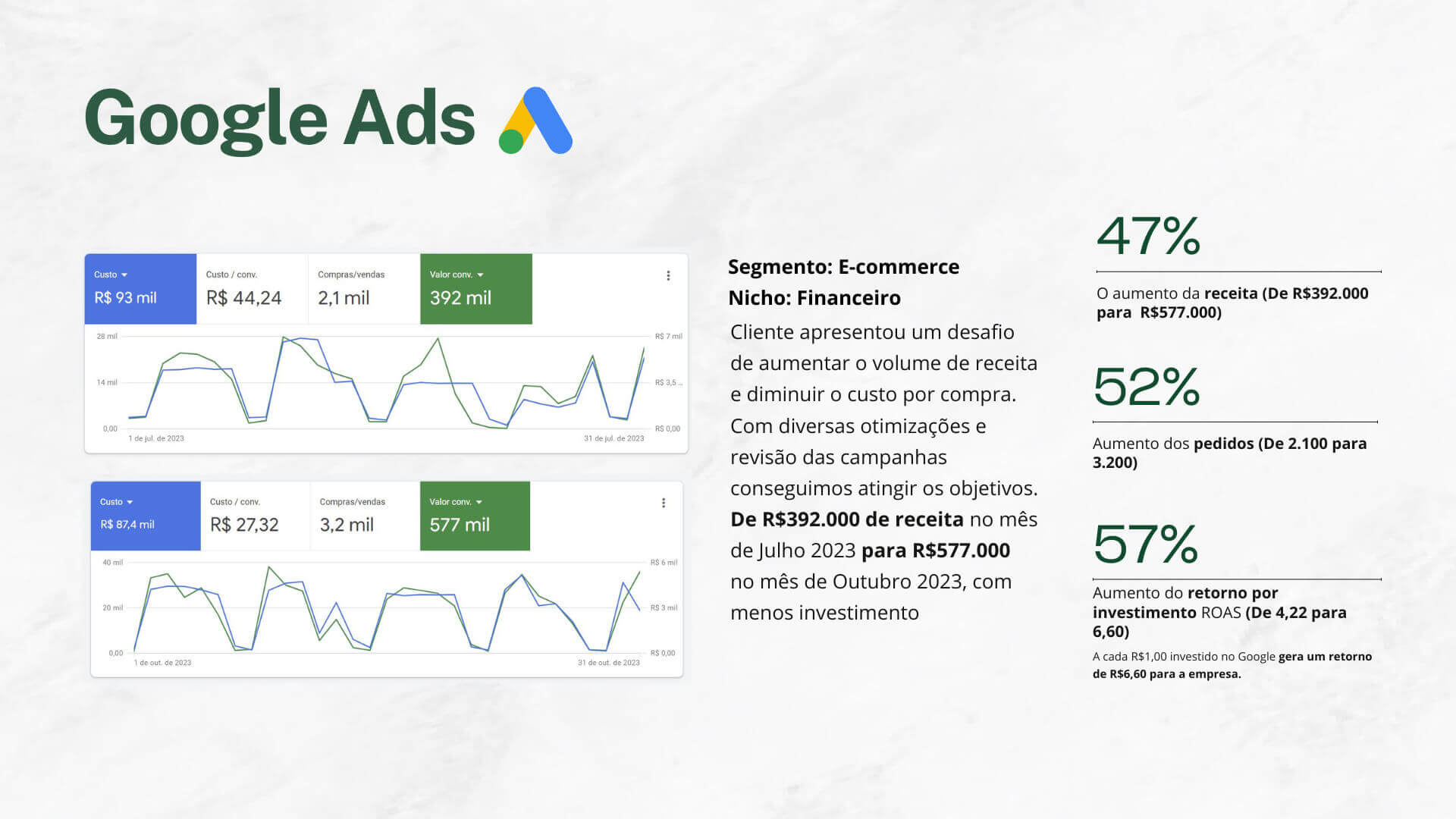 Quem trabalha com a gente sente a diferença — não só nos números, mas no suporte, no cuidado com o negócio e no envolvimento real com os resultados.