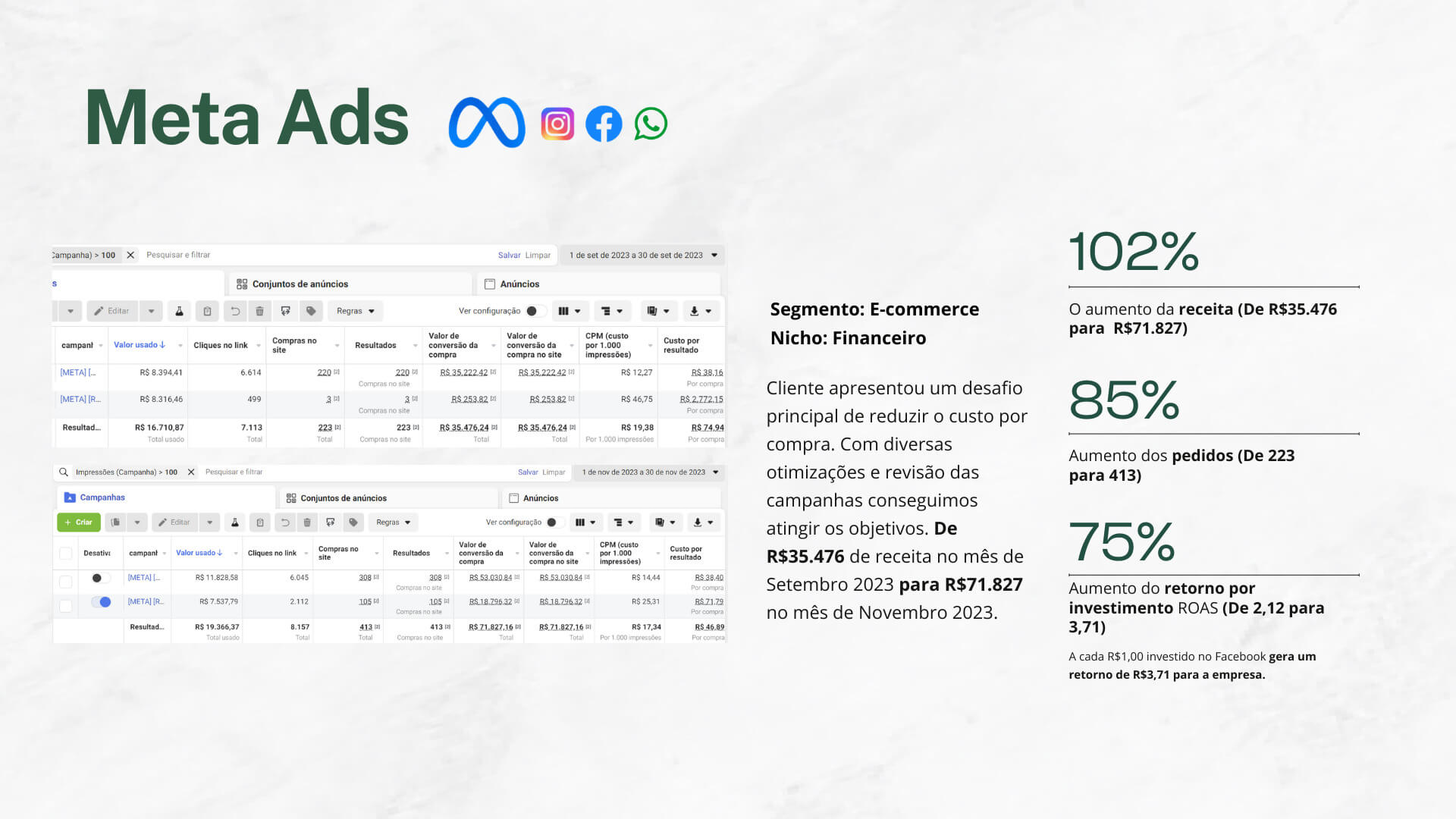 Oferecemos consultoria especializada para gestores de tráfego e empreendedores, garantindo que suas campanhas sejam otimizadas para garantir maiores resultados.